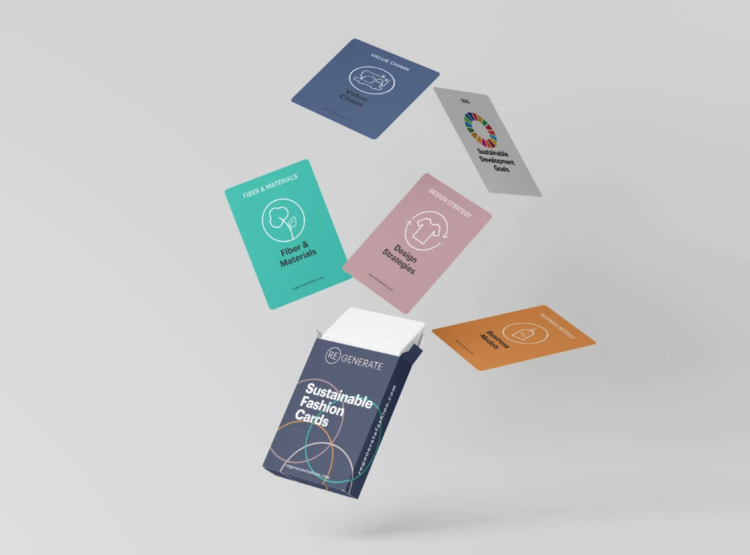 Go-to tools, materials, resources?: “Since we started, we have been following the United Nations’ Sustainable Development Goals and it is a framework we always share with our clients. Also, shameless plug, the Sustainable Fashion Cards (pictured below)! A tool that REGENERATE developed that offers sustainable strategies from materials, design, and business models.”